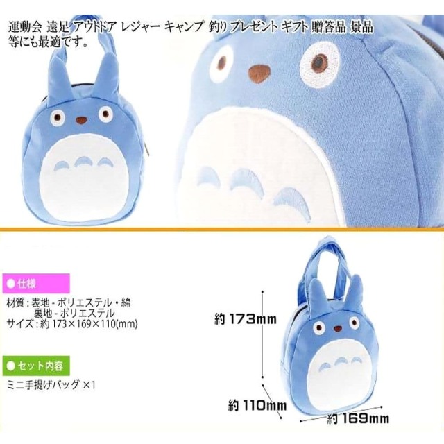 母の日ギフトに! スタジオジブリの人気キャラクター! 「となりのトトロ」の 柔らかなスウェット生地でできた、トトロの形をした小物用手さげバックです。 ちょっとしたお出かけのバッグとして、便利にお使いいただけます。 お化粧道具や携帯電話、洗面小物など普段使いの小物バッグとして活躍。 小さめの弁当箱なら、ランチバッグとしても使えます。 総合ギフト専門店アレグリス神戸よりお届け致します。