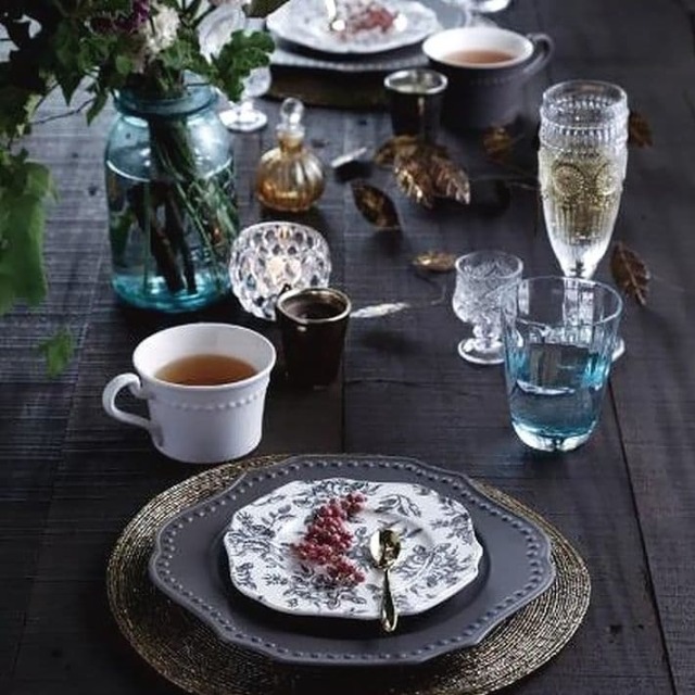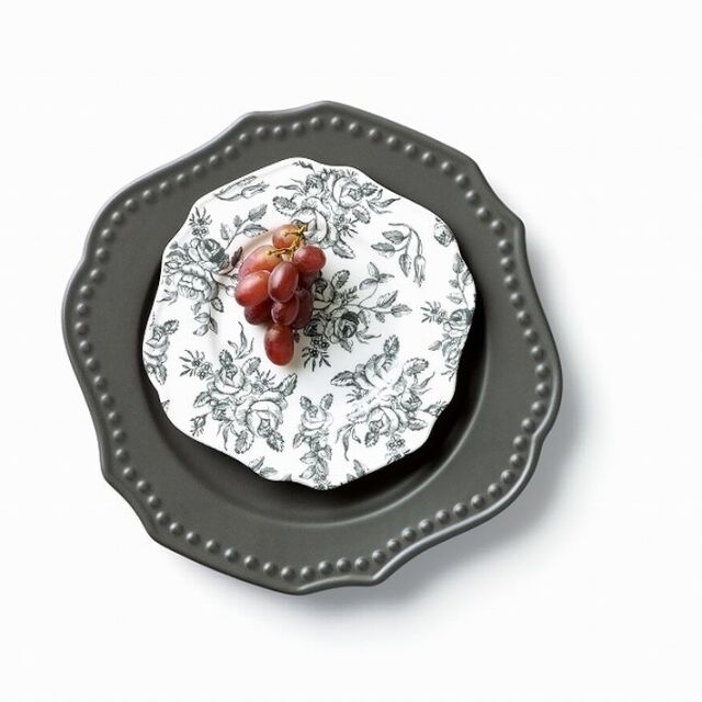 載せるものをシックに見せてくれるダークカラーのプレートと、優雅なシノワズリのプレートです。ロマンチックな大人の空間を創り上げます。