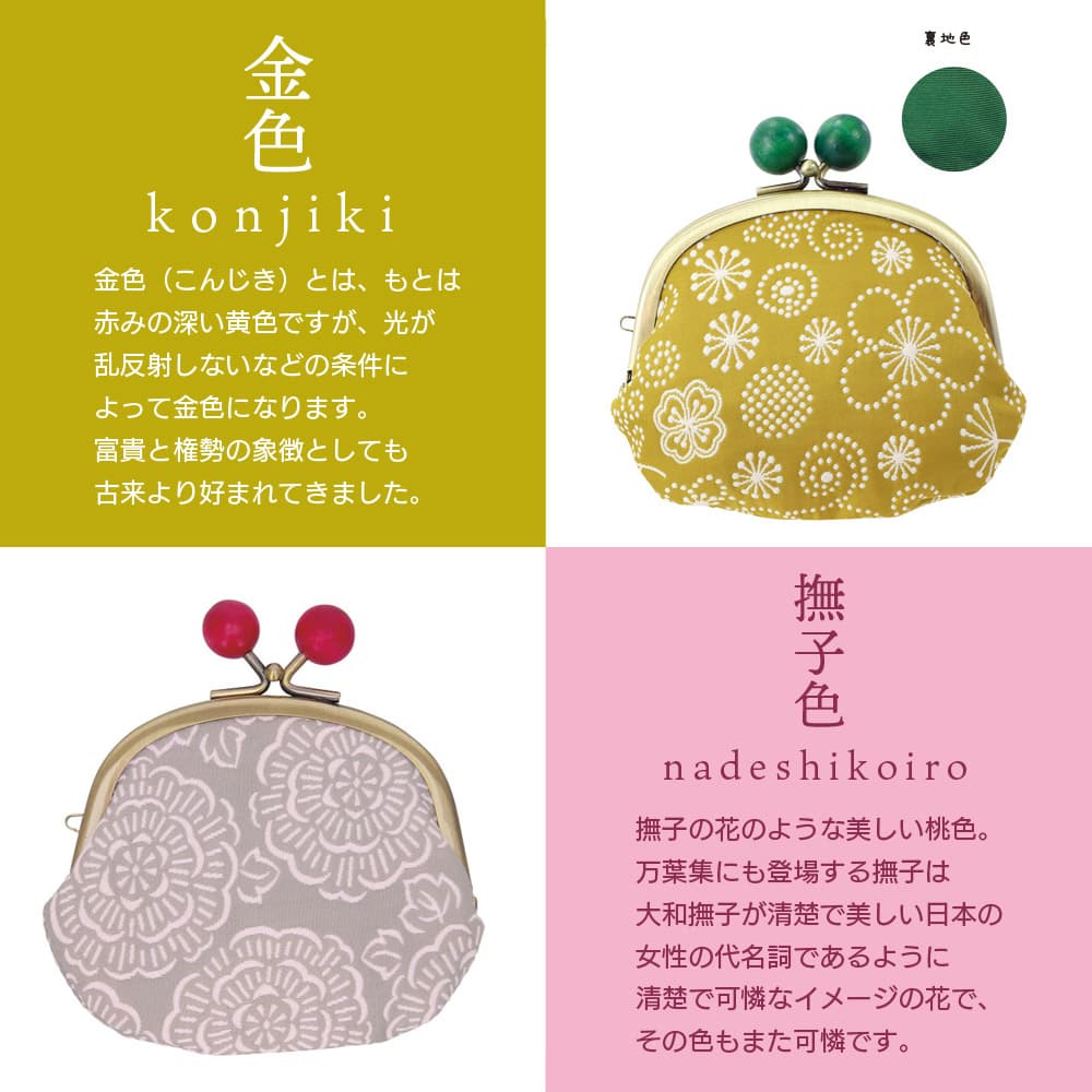 立体感のある凹凸で柄を織り出した二重織物、ふくれ織。 二重組織の紋織が多く、強撚糸と無撚糸を混ぜて織り、織り上がりを精錬すると、 強撚糸が縮み、無撚糸が膨れ上がるもので、マトラッセともいいます。 ミニサイズで小銭入れに最適なサイズ。 アクセサリーや自転車の鍵など、無くしたくないものを一時入れておくのにもピッタリ! 美しい日本の伝統色をご用意。 留め金であるらっきょう玉の部分は木玉になっていてビビッドな色づかい。 あなたにぴったりの色をお選びください。 母の日ギフトに! 総合ギフト専門店アレグリス神戸より心を込めてお届けします。