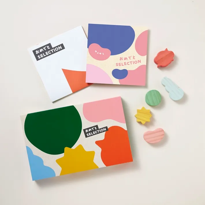 『おめでとセレクション』は、出産祝いやベビーのお誕生日プレゼントにぴったり。知育遊びを促すオリジナルのおもちゃ付きで「貰った瞬間から嬉しい」出産祝いカタログギフトです。オノマトペがモチーフのポップでかわいいデザインと、「ベビーを迎えたばかりのママとパパが本当にほしいもの」「子どもが笑顔になるもの」を集めた商品ラインナップも魅力的な、ベビーギフトの新定番です。 総合ギフト専門店「アレグリス神戸」の通販サイトにて好評販売中です。