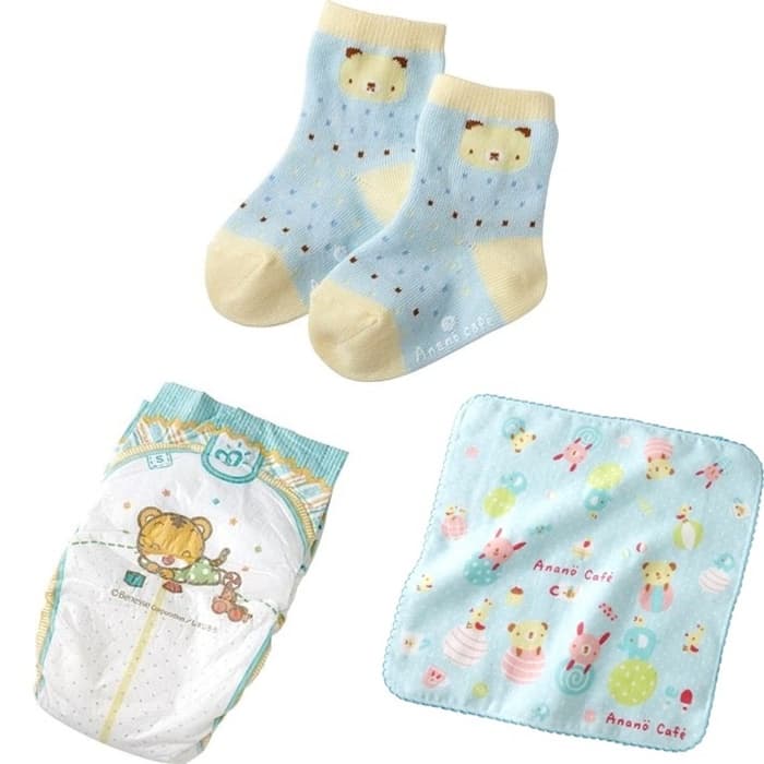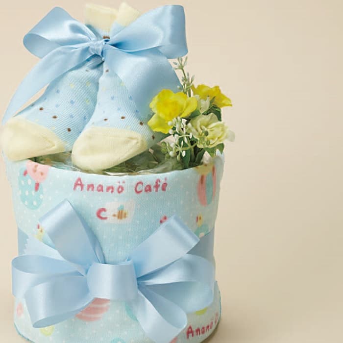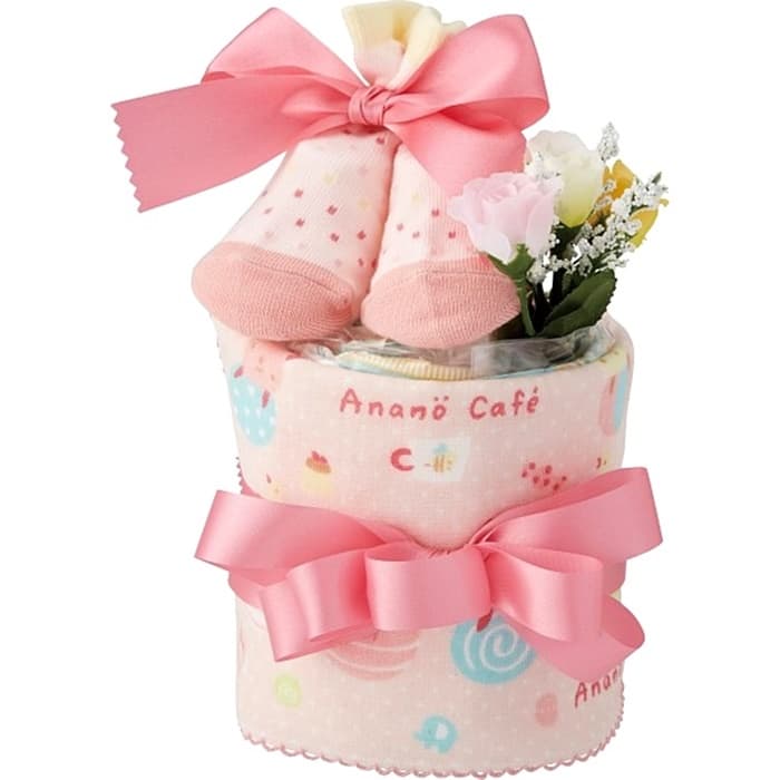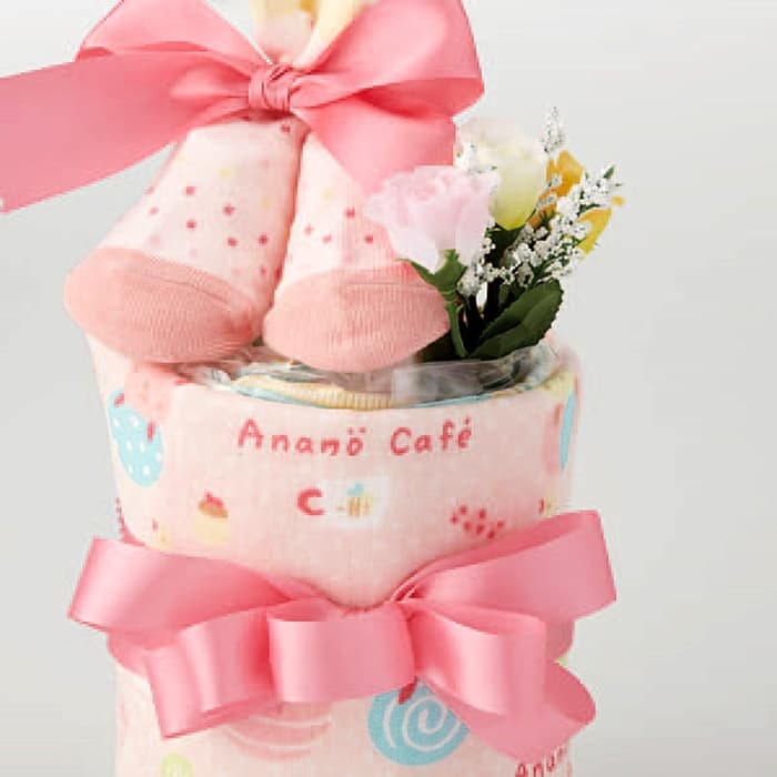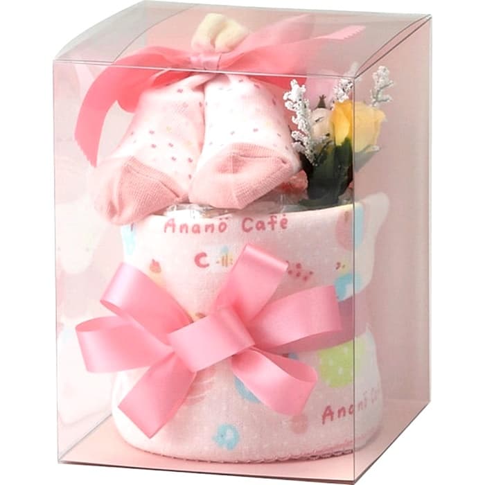 《ラッピング無料》 出産祝い プチおむつケーキ アナノカフェ 選べる2色(ピンク・ブルー)ギフトセット タオル かわいい ギフト プレゼントお返し 内祝 お祝い セット 出産 結婚 神戸 通販 人気