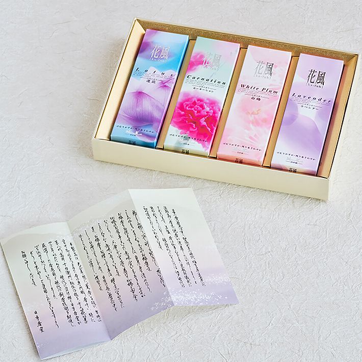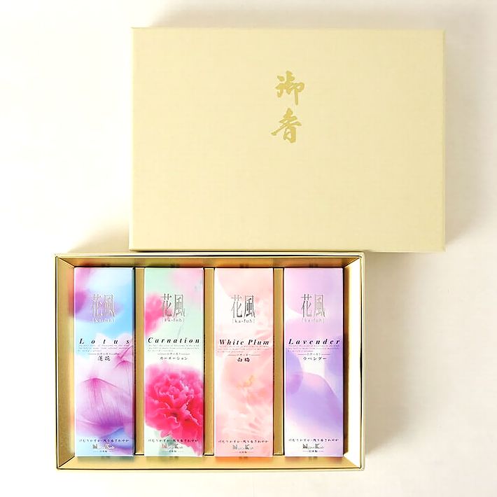 日本香堂 花風進物4種入 お彼岸 お供え お供え物 お返し 果物 線香 お菓子 飾り 2023 秋 御供 贈る 準備 いつ 土産 食べ物 のし お布施 袋
