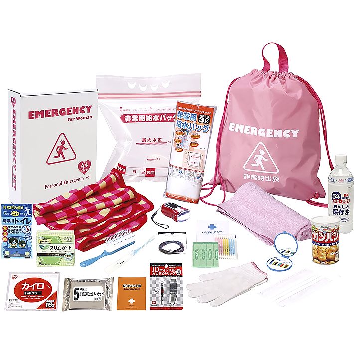 防災グッズ 女性のための非常時持出20点セット (WR-50) 販促品 記念品 粗品 贈答品 パーソナルグッズ 災害支援 景品 イベント ノベルティグッズ 神戸 通販 人気